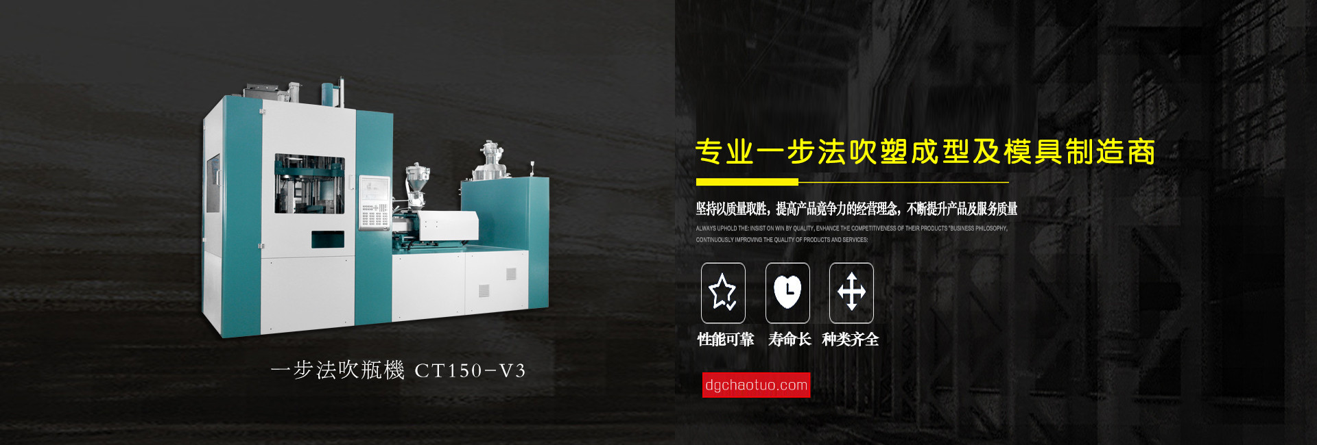 東莞超拓機(jī)械有限公司是一家專(zhuān)業(yè)設(shè)計(jì)生產(chǎn)一步法注吹機(jī)及相關(guān)配套模具的制造企業(yè), 公司自成立至今,始終以市場(chǎng)為導(dǎo)向、科技為基礎(chǔ)、質(zhì)量第一、用戶(hù)至上為服務(wù)宗旨,并一直在跟進(jìn)和學(xué)習(xí)世界上先進(jìn)的“注拉吹”中空成型技術(shù)專(zhuān)業(yè)領(lǐng)域配件制造和檢驗(yàn)技術(shù),不斷地創(chuàng)新求異,其中PPSU奶瓶領(lǐng)先國(guó)內(nèi)同行業(yè),堅(jiān)持“超越拓展,品質(zhì)保證”的企業(yè)文化理念,為客戶(hù)提供上乘服務(wù)。公司總經(jīng)理姜業(yè)東攜全體員工衷心感謝新老客戶(hù)的支持和關(guān)愛(ài),竭誠(chéng)歡迎各位朋友蒞臨指導(dǎo)與合作,共圖發(fā)展。